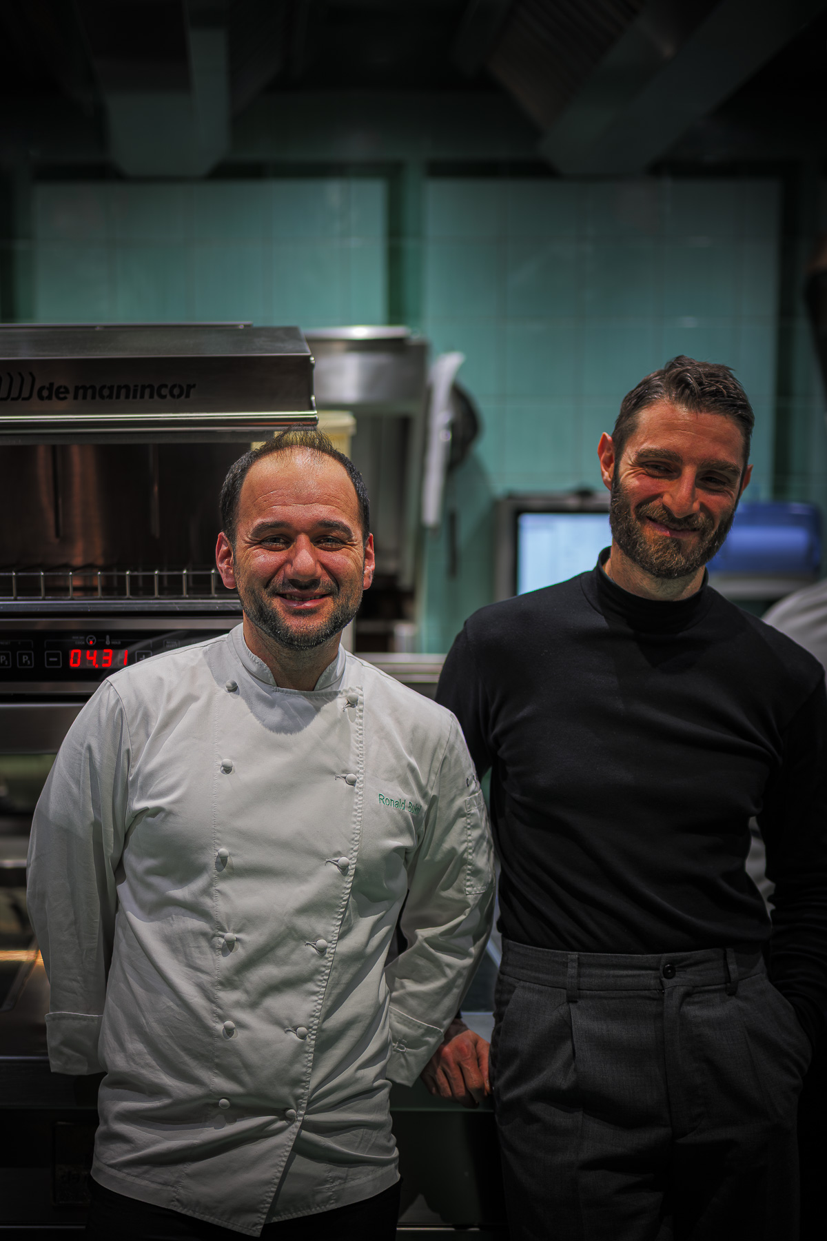 O Coro é o projeto de dois homens que já trabalharam juntos no passado e que o tempo parece continuar a querer unir. Francesco Perali é de Orvieto, estudou Economia, aprendeu o ofício ao lado de Gianfranco Vissani e regressou à sua cidade, com a vontade e com a clareza de quem sabe que quer fazer diferente. Para isso convenceu Ronald Bukri, chef, nascido em Durrës, na Albânia, mas feito homem na Toscana. Os dois cruzaram-se no Osticcio em Montalcino – um na cozinha, o outro na sala – e em 2024 abriram o Coro. O nome funde as últimas letras de Francesco com as primeiras de Ronald. É também o coro da antiga igreja. E é, acima de tudo, a ideia de que duas vozes distintas podem produzir algo que nenhuma das duas produziria sozinha.