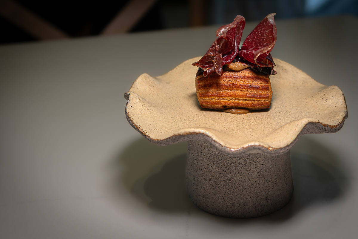 Flavors and textures that fill the entire mouth as if it were a full dish. It’s savory pastry at its most expressive. Daring, yet precise.