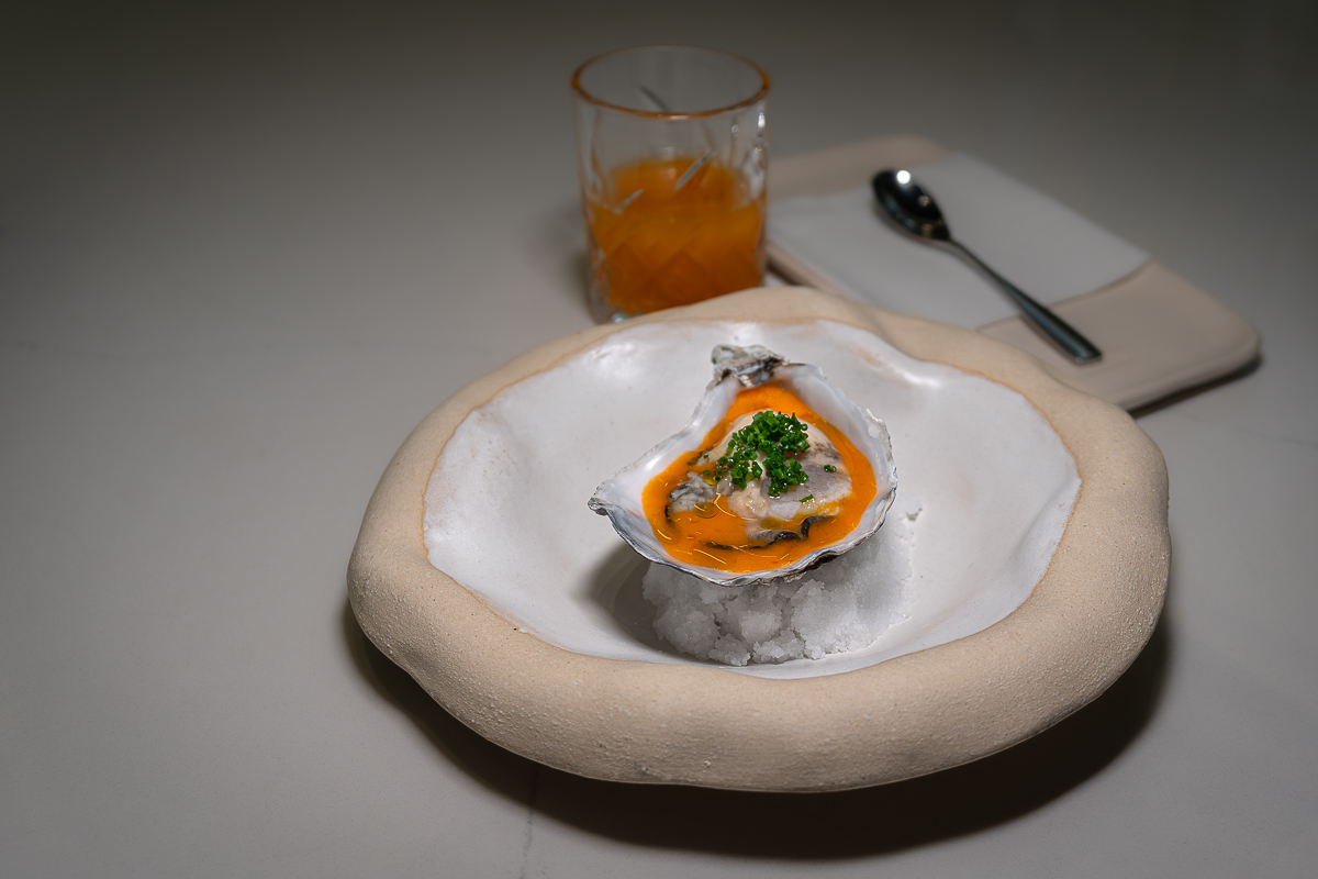The heat of fermentation doesn’t burn; it warms. It’s different. It’s controlled. The oyster is impeccable, fresh, briny. The sauce doesn’t hide it – it challenges it. And the oyster rises to the occasion.