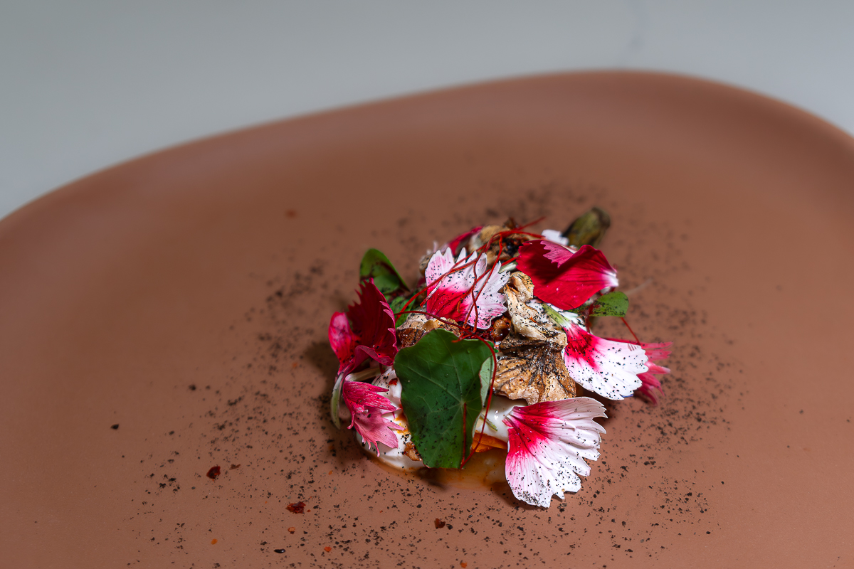 The combination of tomato raisins with black garlic and the freshness of finger lime stand out, exploding in the mouth like small bombs of controlled acidity.