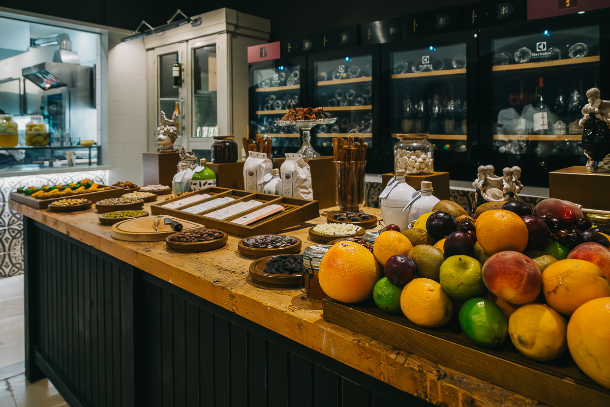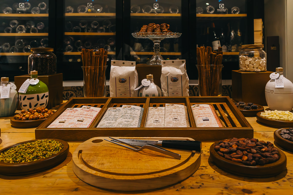 E depois, a surpresa: somos convidados a subir ao piso superior, onde vemos a cozinha e duas mesas cobertas de ingredientes — chocolate siciliano, frutas, frutos secos, mascarpone, ervas. “Escolha”, disse-me o chef pasteleiro, com um sorriso que sugeria que não havia resposta errada.