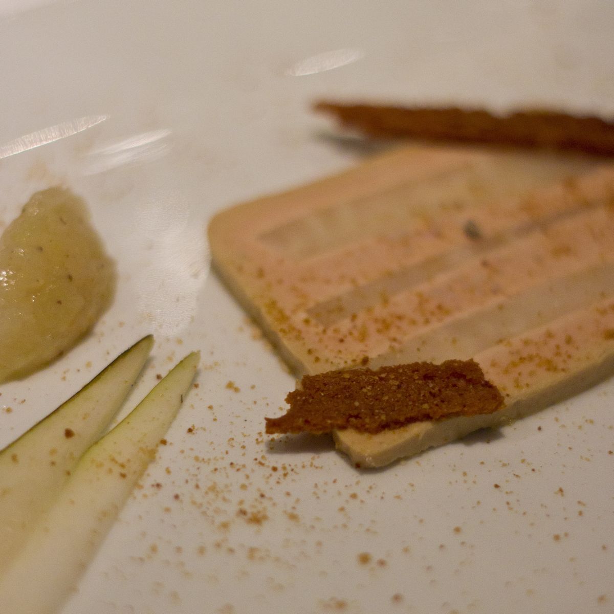 Foie Gras de Pato com aipo, chutney de pêra e pão de gengibre