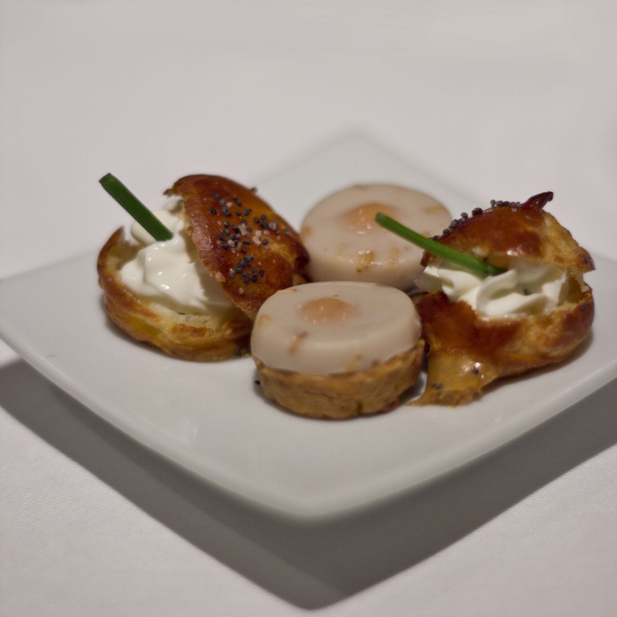 Depois de bem recebidos por toda a equipa e bem instalados nas confortáveis e amplas mesas, começamos a degustação com o já habitual brinde, um excelente cocktail à base de Champanhe e a acompanhar uns pequenos aperitivos que são já marca no restaurante, com Pâte à Choux com queijo e uns pequenos biscoitos salgados com creme de castanha. Seguiu-se, como não poderia deixar de ser, o pão, mais uma vez de elevadíssima qualidade (e vocês sabem o quanto prezo um bom pão), a famosa manteiga de algas de Guy Savoy e um tremendo croquete de legumes ladeado na perfeição com um molho tártaro.