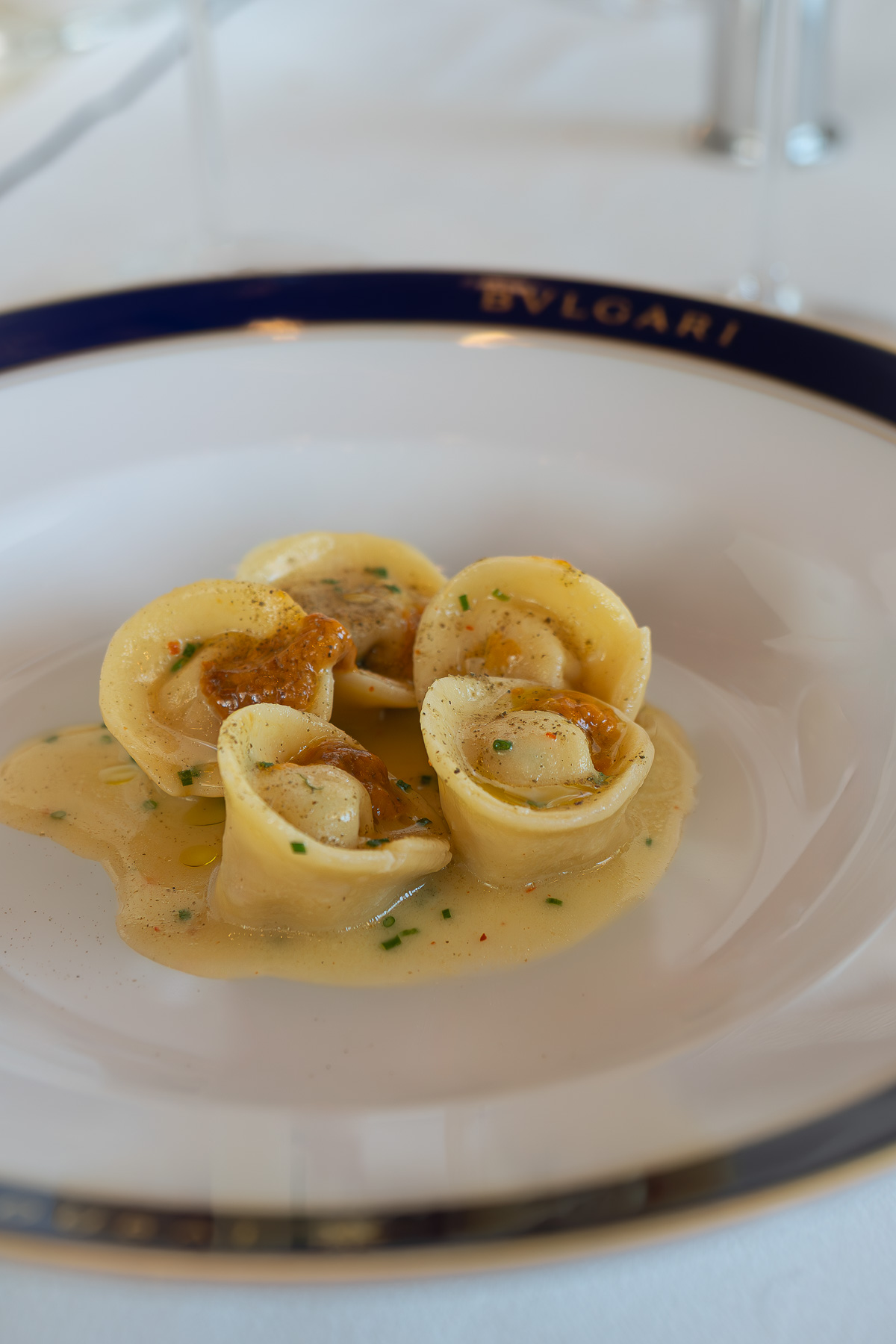 Ficámos nas mãos do chef Andrea Gurzi, responsável pela cozinha do Yacht Club e figura constante ao longo da refeição. Apresentou pratos, explicou escolhas, ajustou porções, sempre com aquele equilíbrio raro entre profissionalismo e genuína hospitalidade. Não é fácil gerir um espaço assim: clientes exigentes, produto nobre, a pressão de servir um menu assinado por um dos chefs mais marcantes da cozinha mundial.