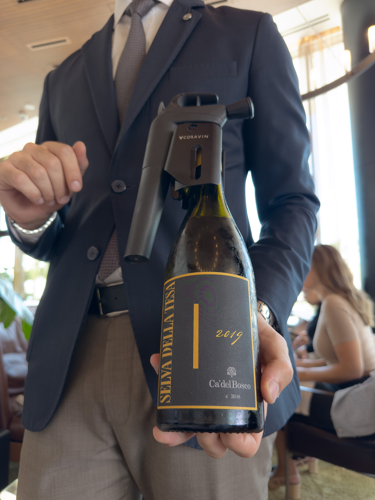Para as pastas, o sommelier sugeriu um branco Ca’ del Bosco Selva della Tesa 2019, um chardonnay com pedigree, fruto de uma vinha singular, distinto e com corpo suficiente para segurar a riqueza da pasta com lavagante.